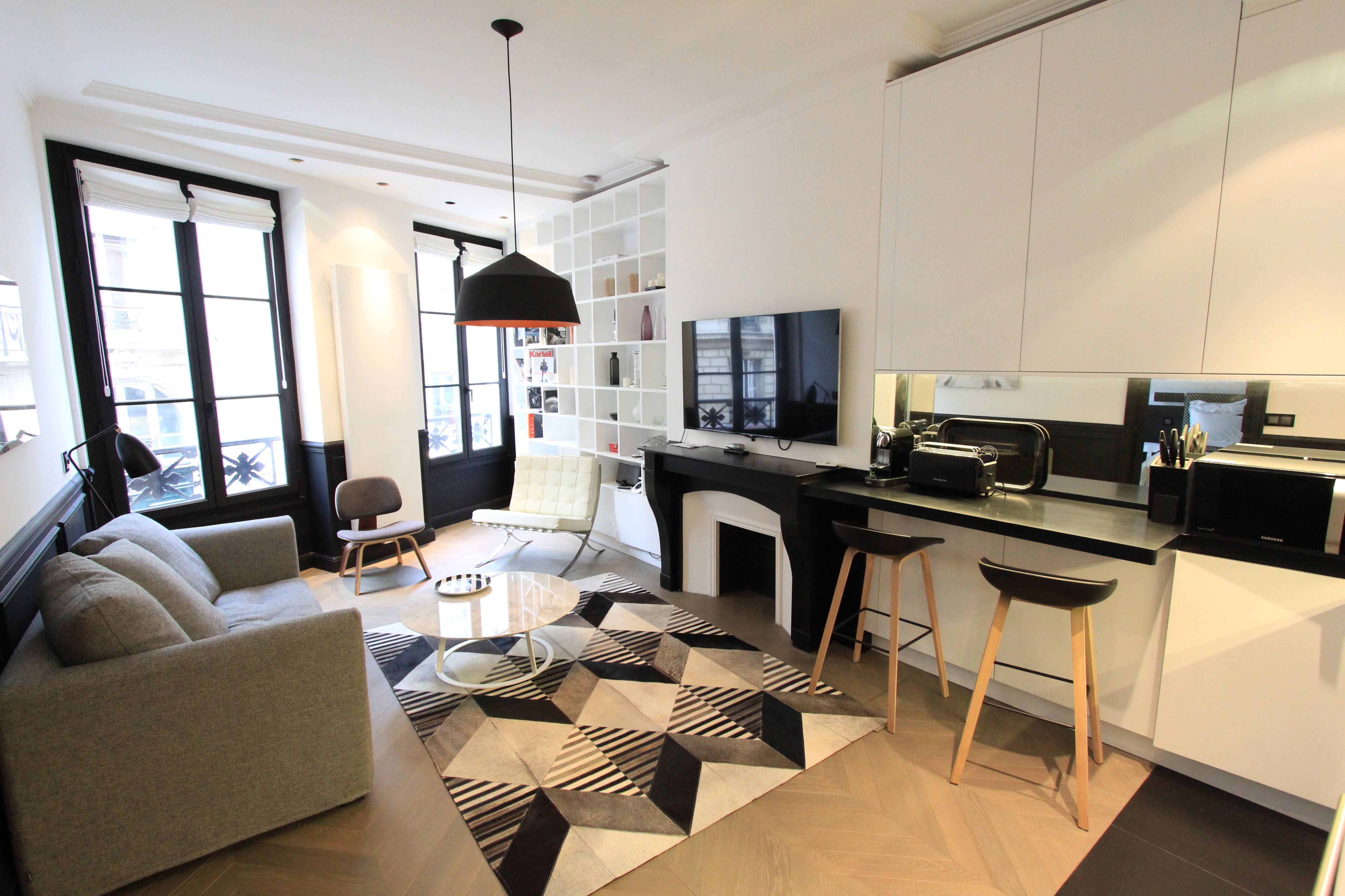 LOCATION MEUBLÉE – BAIL SOCIÉTÉ OU RÉSIDENCE SECONDAIRE – Loyer : 4.650 Euros (chauffage, eau, électricité, climatisation et internet inclus.). Face au Louvre, dans un bel immeuble 19ème, appartement situé au dernier étage, meublé et décoré de façon contemporaine et climatisé. Il est composé d’un salon, avec une cuisine ouverte et coin repas, d’une chambre parentale avec sa salle de douche et WC séparés, et d’une deuxième chambre et sa salle de douche. Contrat exclu du champ d’application de la loi ALUR ; Honoraires locataire : 5.580Euros.