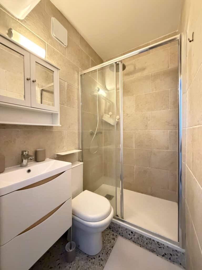 Entièrement rénové avec goût, il séduit par son plan optimisé, son confort moderne et sa décoration soignée. Il se compose d’une pièce principale avec coin kitchenette, salle de douche avec wc.