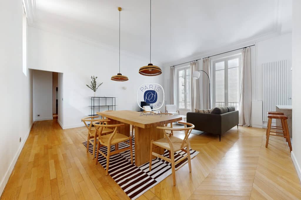 À deux pas de la Place des États-Unis, situé au 2ᵉ étage d’un magnifique immeuble haussmannien en pierre de taille, sécurisé et de grand standing, cet appartement meublé et équipé de 102,11 m² a été entièrement rénové avec des matériaux de qualité.