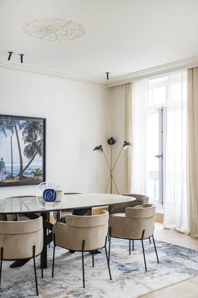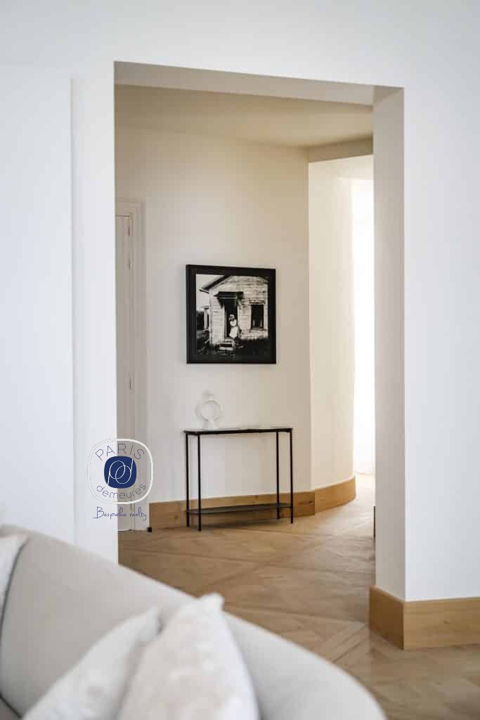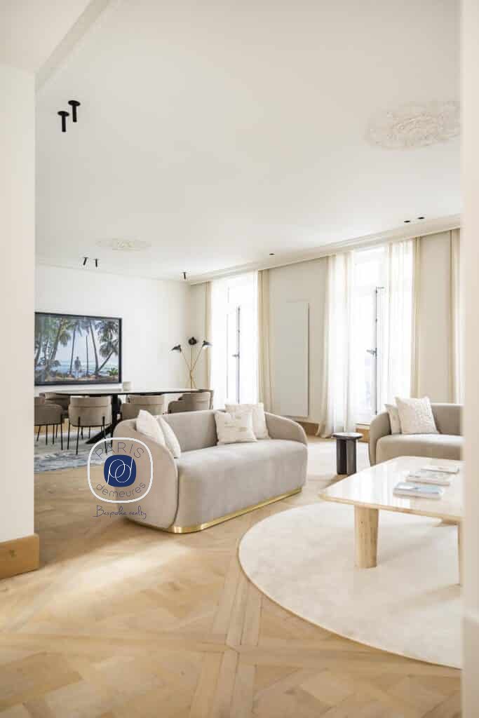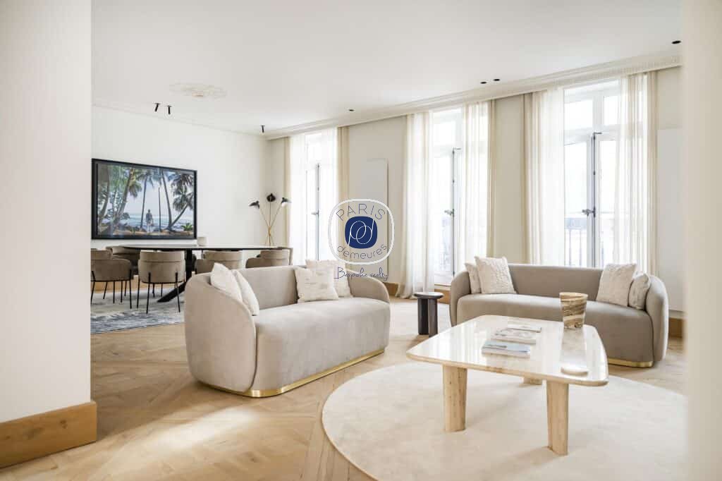 Dans un immeuble en pierre de taille, appartement familial et de réception de 182,99 m² au sol dont 177 m² Loi Carrez entièrement refait à neuf par l’architecte de renom Olivier Lempereur.
