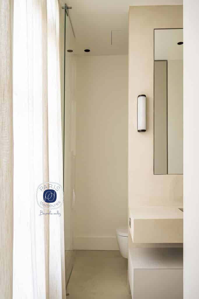 Prestations très haut de gamme, parquet Versailles, cheminée en Marbre Breccia Violeta, restauration des moulures d’origines en plâtre. Doublage des murs, double vitrage thermique et phonique, isolation complète sol et plafond, béton ciré, menuiserie sur mesure, wc japonais font de cet appartement un ensemble unique, mélangeant le charme historique parisien et le confort actuel.